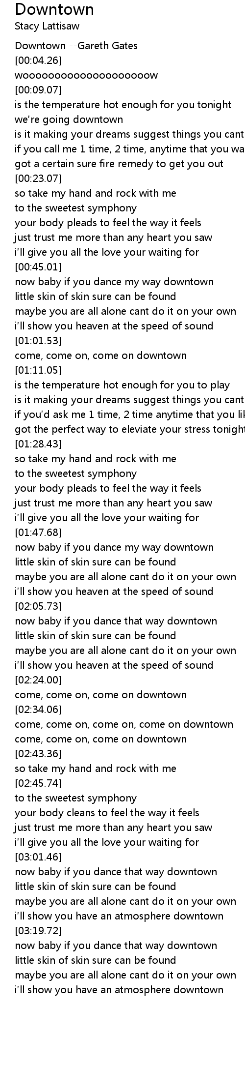 | [00:00.00] | Downtown Gareth Gates |
