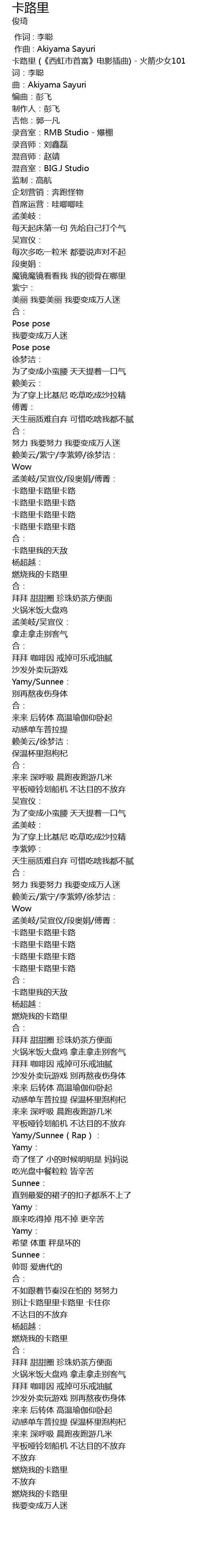 | [00:00.92] | 卡路里 (《西虹市首富》电影插曲) - 火箭少女101 |