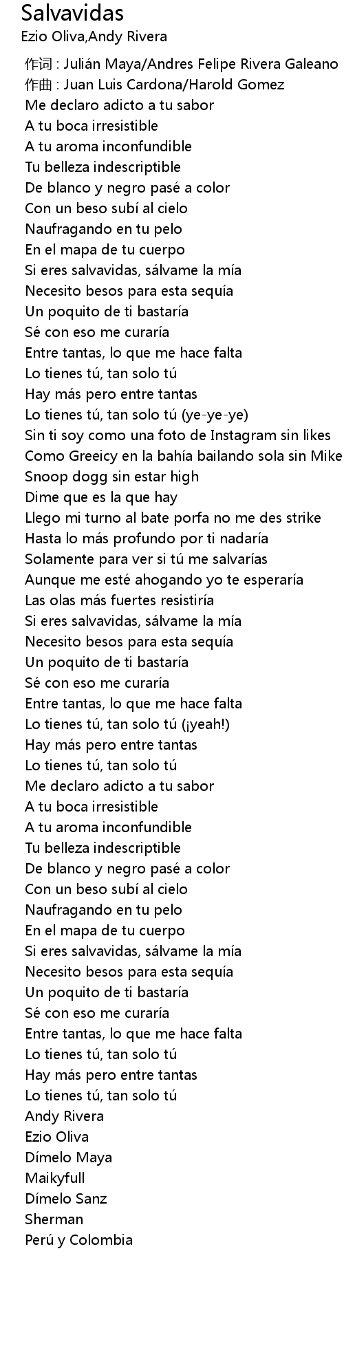 | [00:00.000] | 作词 : Julián Maya/Andres Felipe Rivera Galeano |