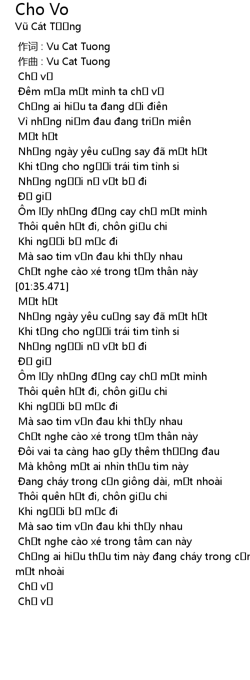 | [00:00.000] | 作词 : Vu Cat Tuong |