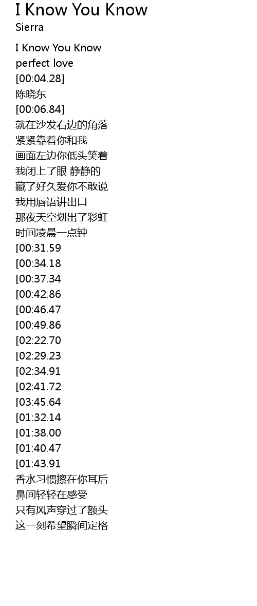 | [03:01.30][02:22.70][00:54.66] | I Know You Know |