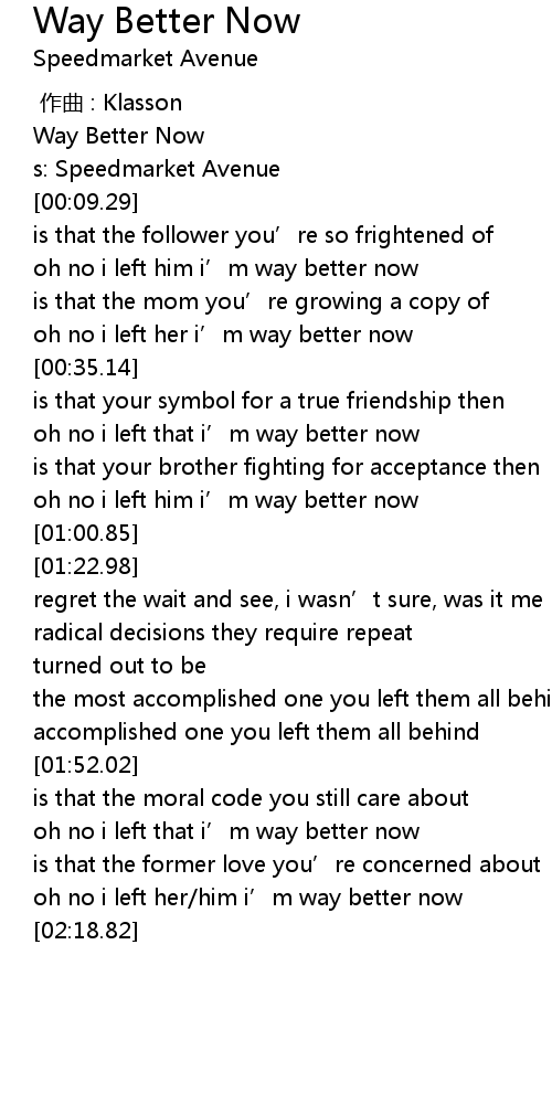 | [00:03.29] | Way Better Now |