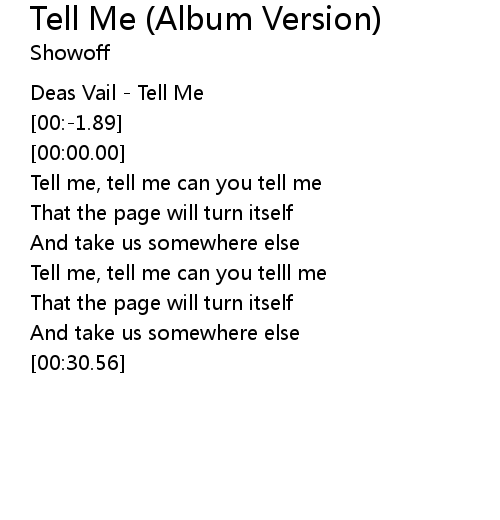 | [00:00.89] | Tell me, tell me can you tell me |