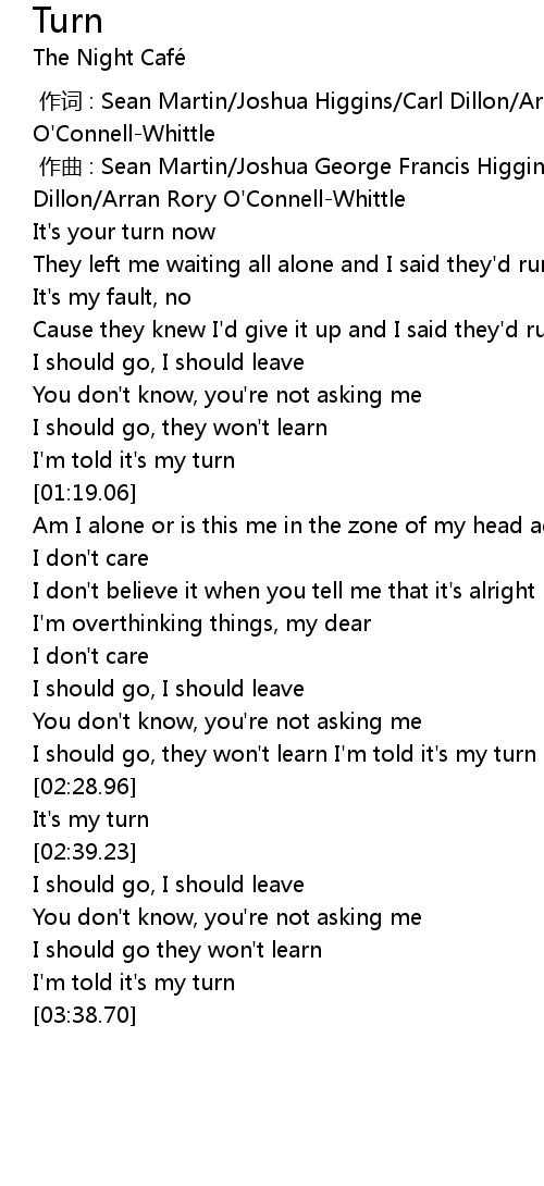 | [02:32.94] | It' s my turn |