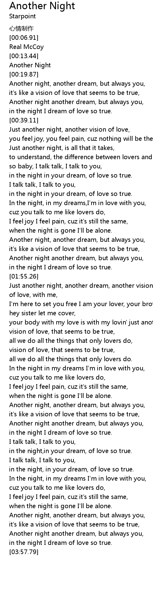| [03:15.14] | in the night,in your dream, of love so true. |
