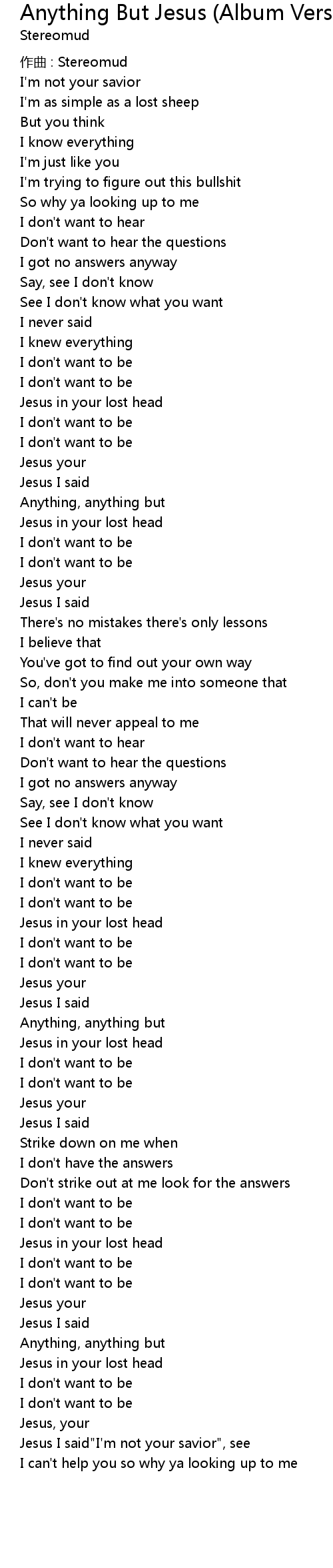 | 歌曲 | Anything But Jesus (Album Version) |
