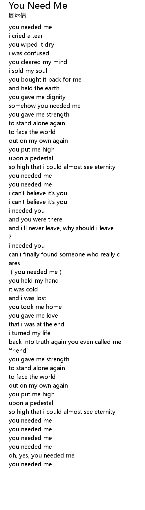 | [01:18.70] | you needed me |