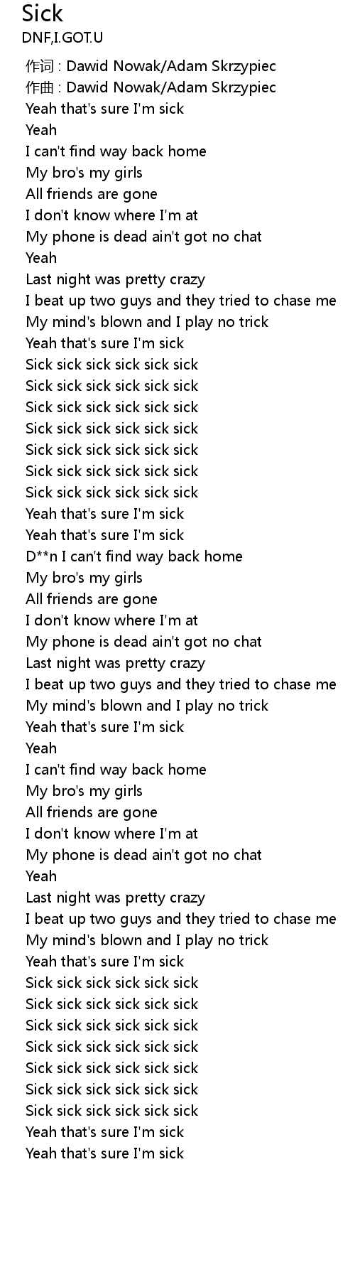 | [03:02.227] | Yeah that' s sure I' m sick |