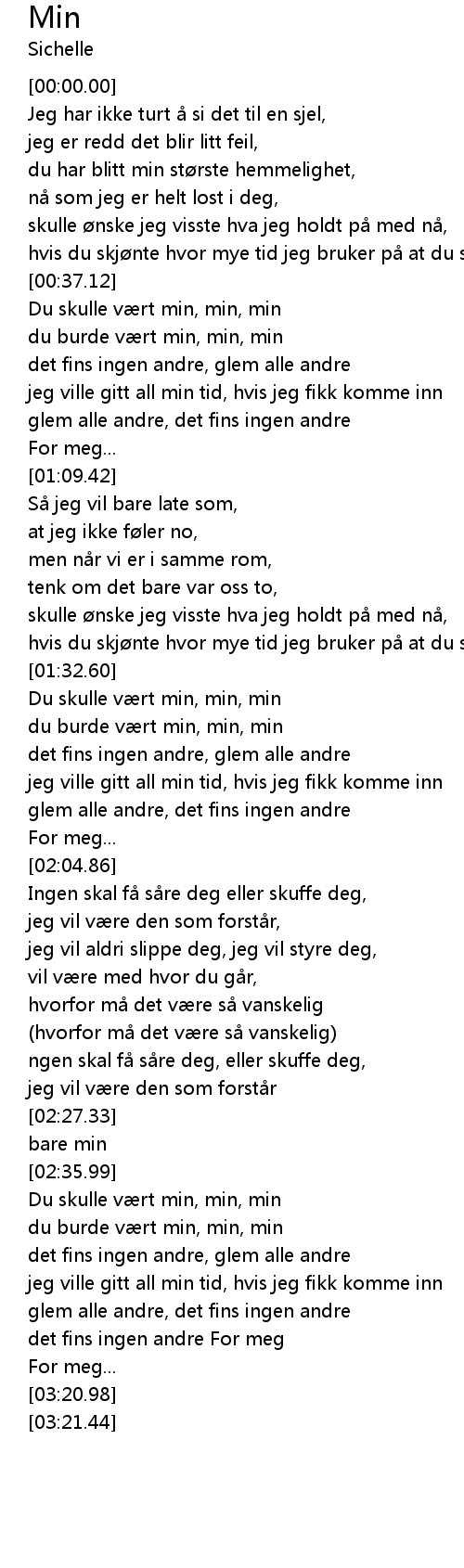 | [00:37.15] | Du skulle vært min, min, min |