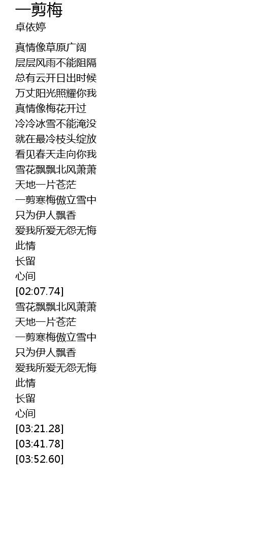 | [00:54.52] | 真情像梅花开过 |