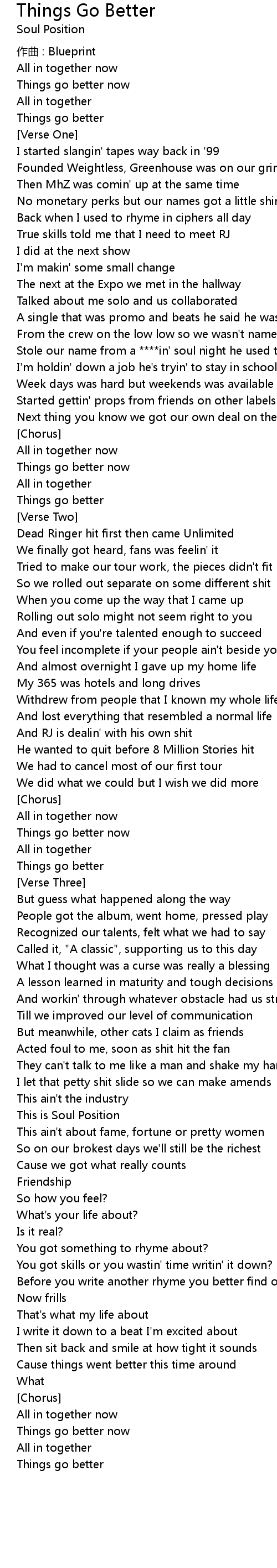 | 歌曲 | Things Go Better |