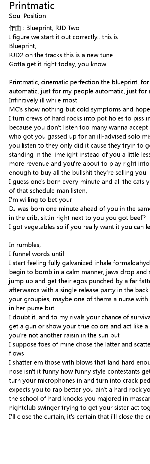 | Printmatic, cinematic perfection the blueprint, for crews that lack direction automatic, just for my people automatic, just for my crew | |