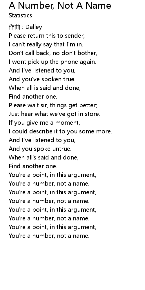 | 歌曲 | A Number, Not A Name |