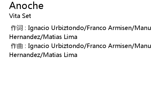| [00:00.00-1] | zuò cí : Ignacio Urbiztondo Franco Armisen Manuel Alvarez Santiago Hernandez Matias Lima |