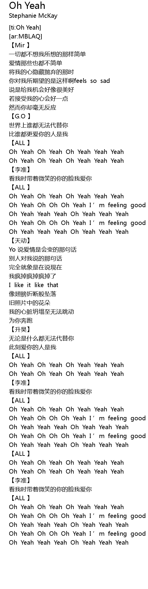 | [01:49.681] | Oh Yeah Oh Yeah Oh Yeah Yeah Yeah |