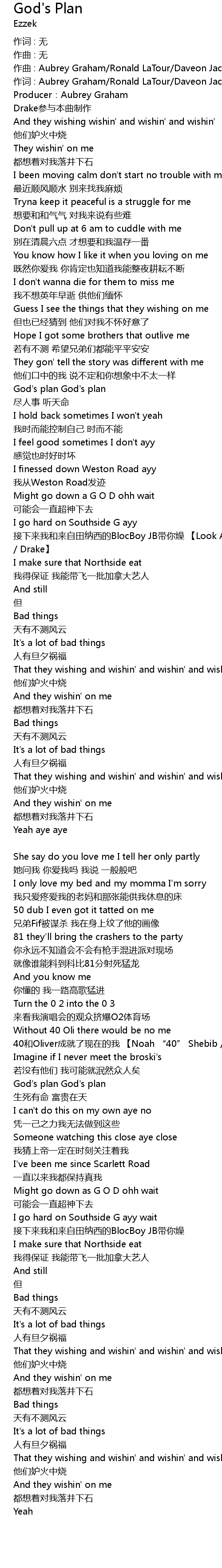 | 专辑 | Drake - God's Plan |