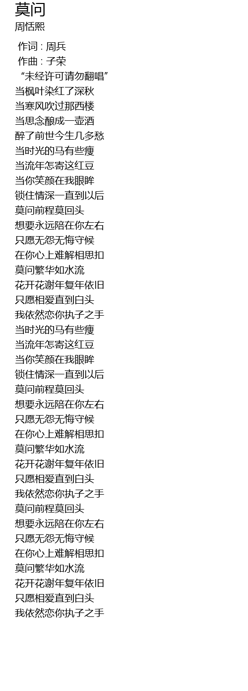 | [01:09.63] | mo wen qian cheng mo hui tou |