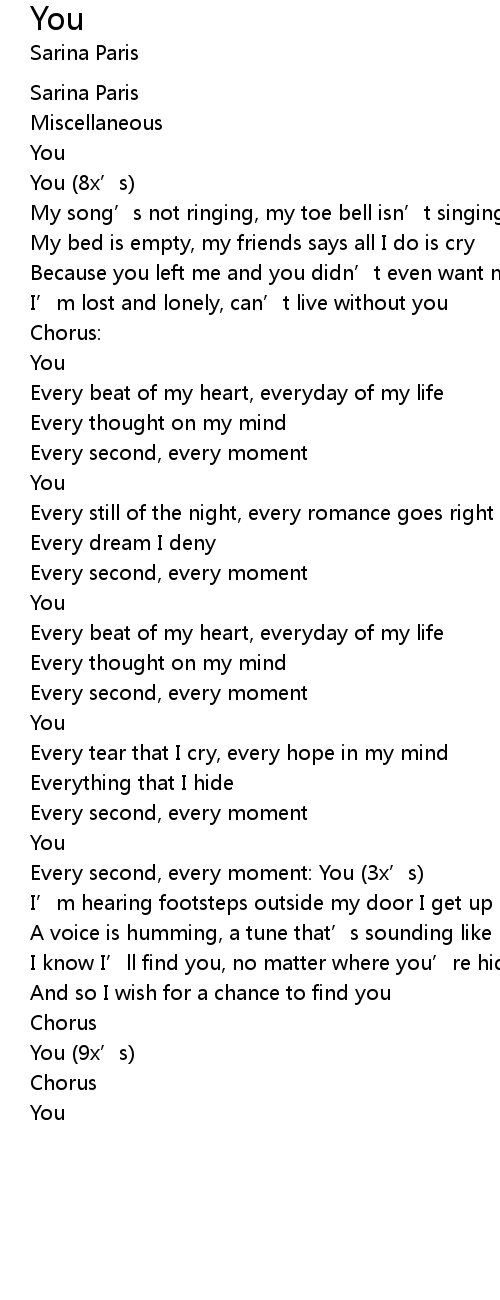 | Every second, every moment: You (3x’s) | |
