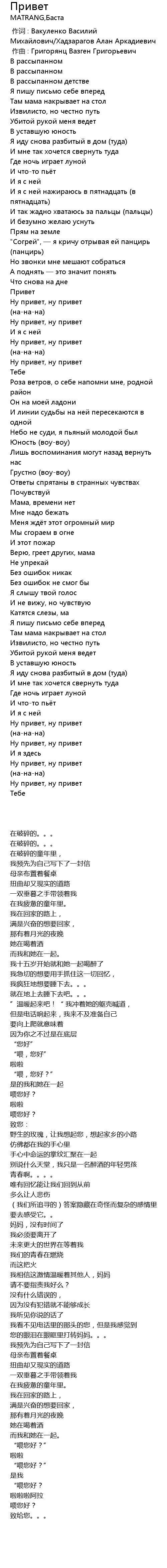 | [00:00.000] | 作词 : Вакуленко Василий Михайлович/Хадзарагов Алан Аркадиевич |