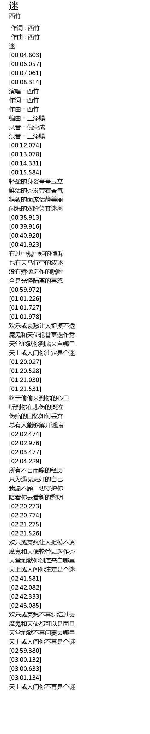 | [00:00.000] | 作词 : 西竹 |