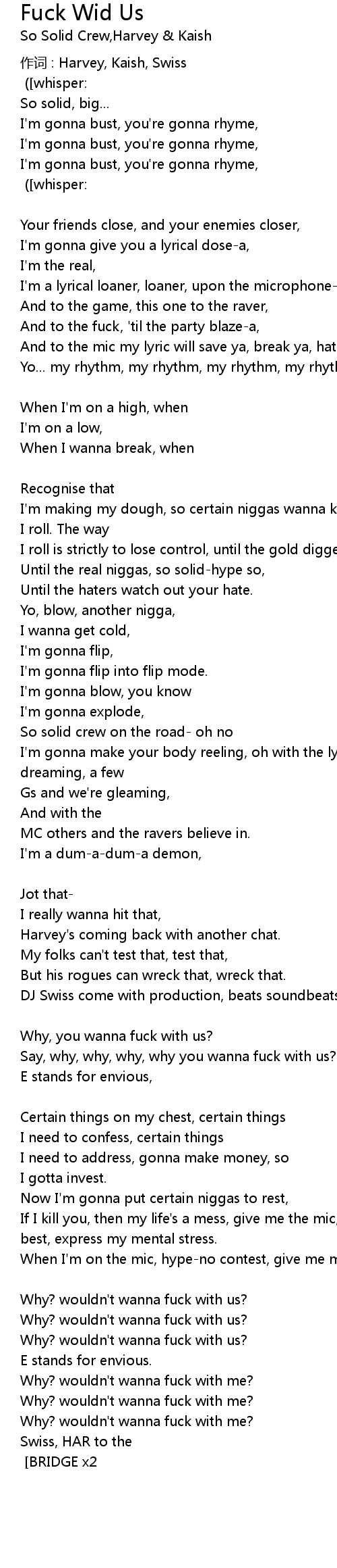 | So solid crew bang for fun. x2 whisper: Swiss, Harv. So, Solid. x2 VERSE 1: HARVEY | |