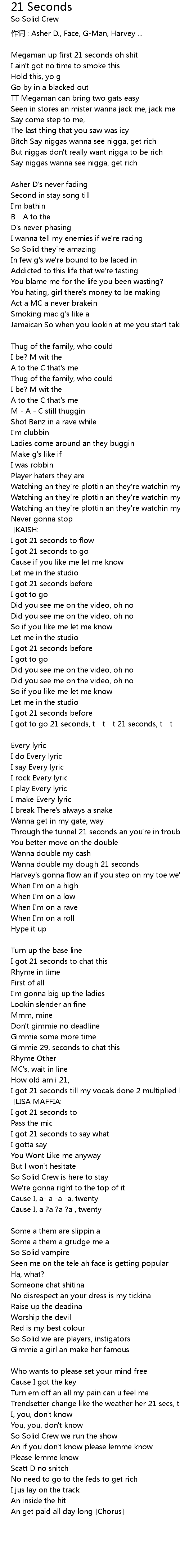 | I got 21 seconds till my vocals done 2 multiplied by 10, plus 1 | |