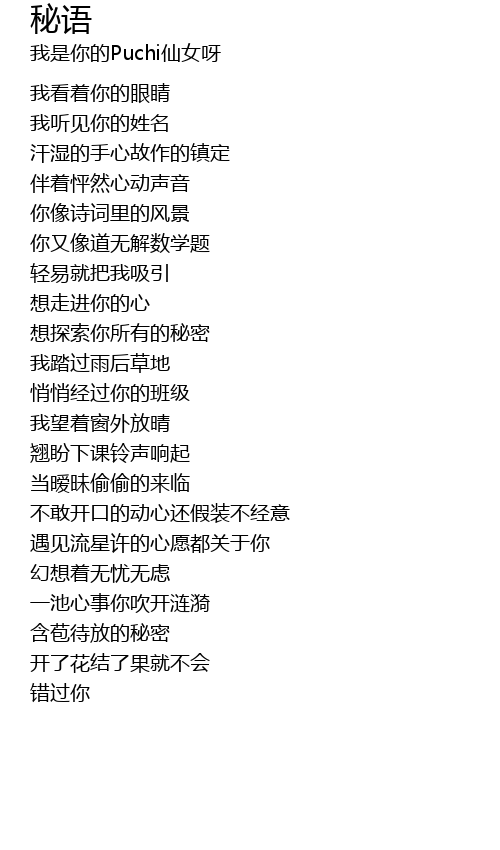 | 歌曲 | 秘语 |