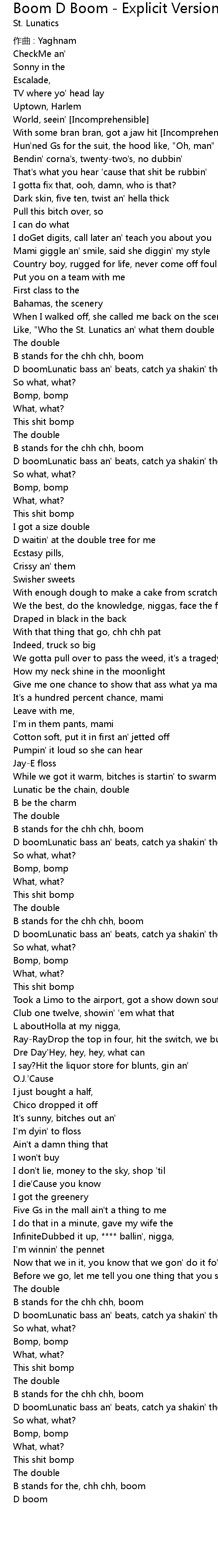 | 歌曲 | Boom D Boom - Explicit Version |