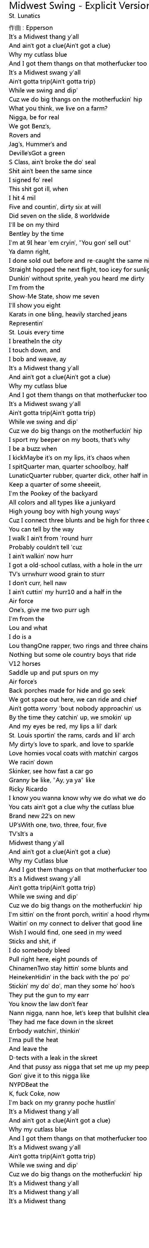 | 歌曲 | Midwest Swing - Explicit Version |