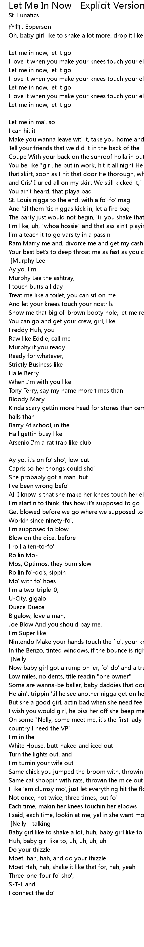 | 歌曲 | Let Me In Now - Explicit Version |