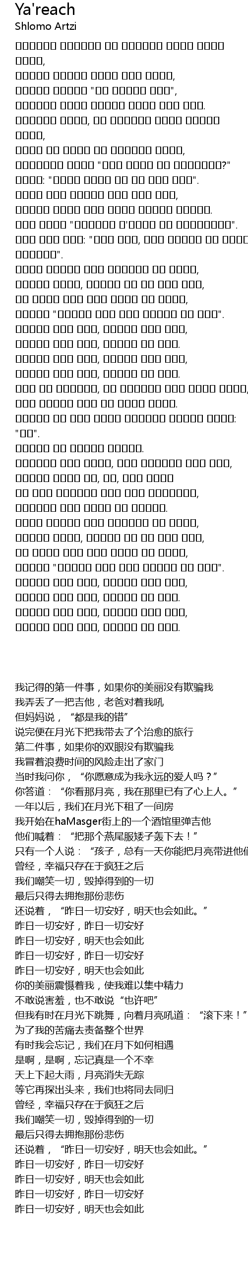 | 歌曲 | Ya'reach |