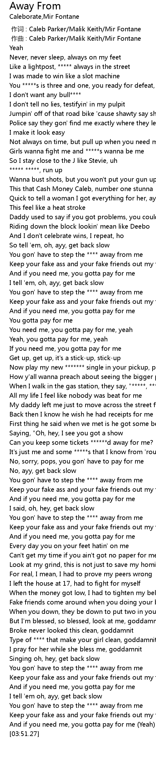 | [03:30.89] | Keep your fake ass and your fake friends out my face |