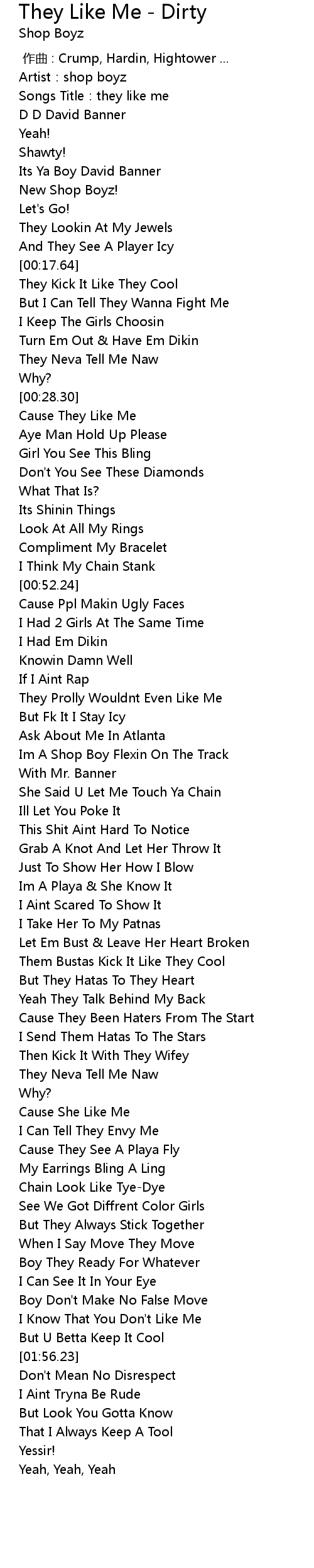 | [01:12.59] | She Said U Let Me Touch Ya Chain |