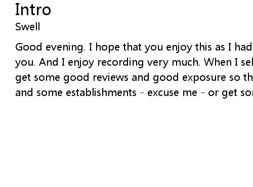 | Good evening. I hope that you enjoy this as I had, as I enjoyed recording it for you. And I enjoy recording very much. When I sell this out, I hope that I can get some good reviews and good exposure so that I would be able to get some jobs and some establishments - excuse me - or get some recording contracts. |