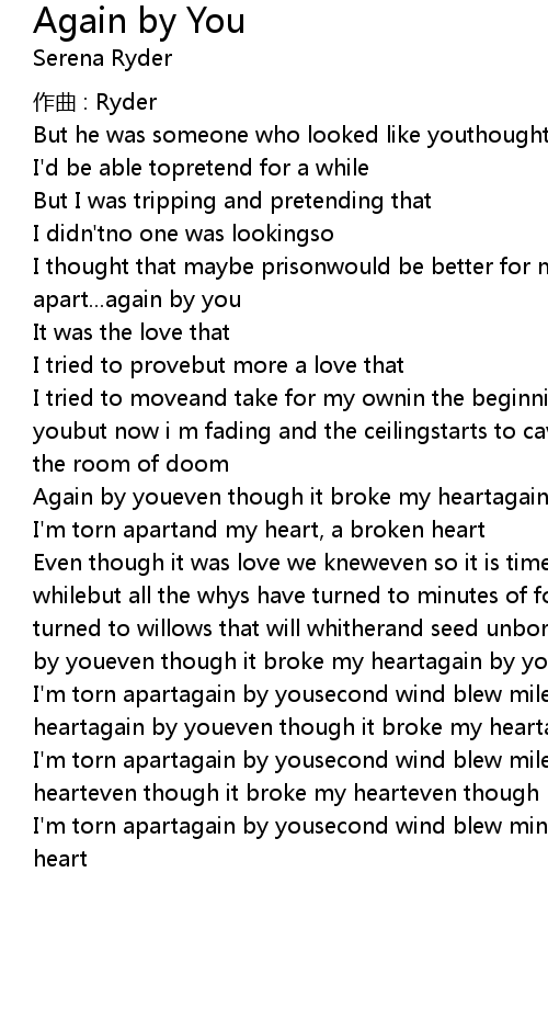 | I' m torn apartagain by yousecond wind blew miles apartand my heart, oh broken heartagain by youeven though it broke my heartagain by youeven though | |