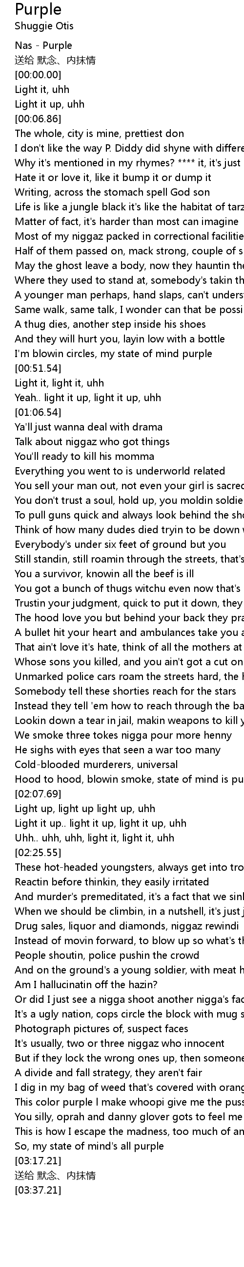 | [00:-7.52] | Nas - Purple |