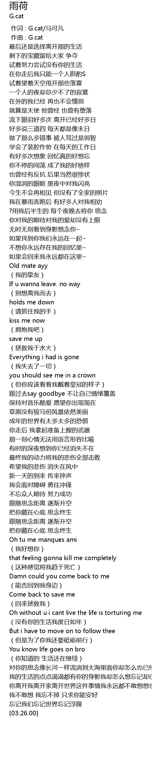 | [00:00.00] | 作词 : G.cat/马可凡 |