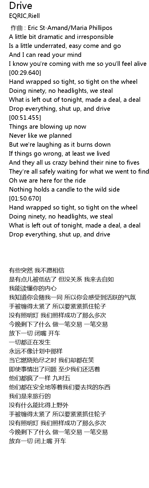 | [00:47.558] | Drop everything, shut up, and drive |