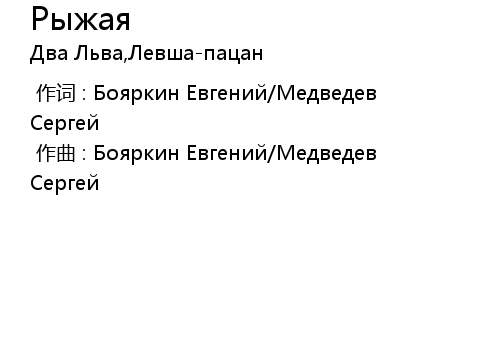 | [00:00.00-1] | 作词 : Бояркин Евгений/Медведев Сергей |