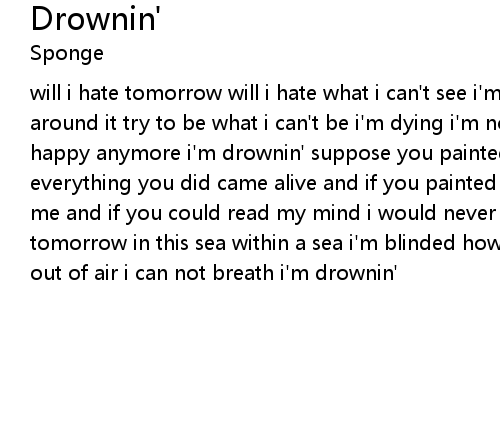 will i hate tomorrow will i hate what i can't see i'm doubting should i walk around it try to be what i can't be i'm dying i'm not happy anymore i'm just not happy anymore i'm drownin' suppose you painted the castle of auvers but everything you did came alive and if you painted all these things just to please me and if you could read my mind i would never be happy what will change tomorrow in this sea within a sea i'm blinded how long will i be down here i'm out of air i can not breath i'm drownin' |