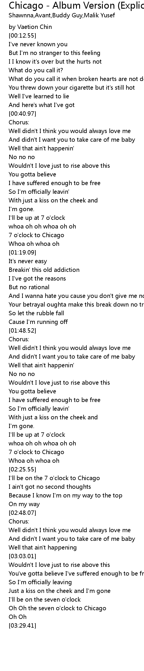 Oh Oh the seven o'clock to Chicago |
