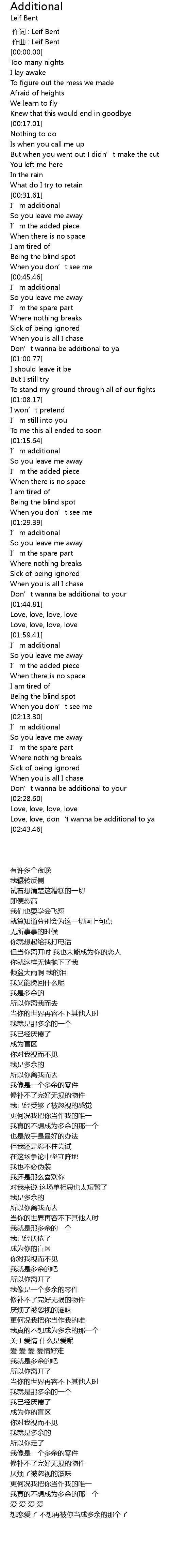 | [00:00.00] | 作词 : Leif Bent |