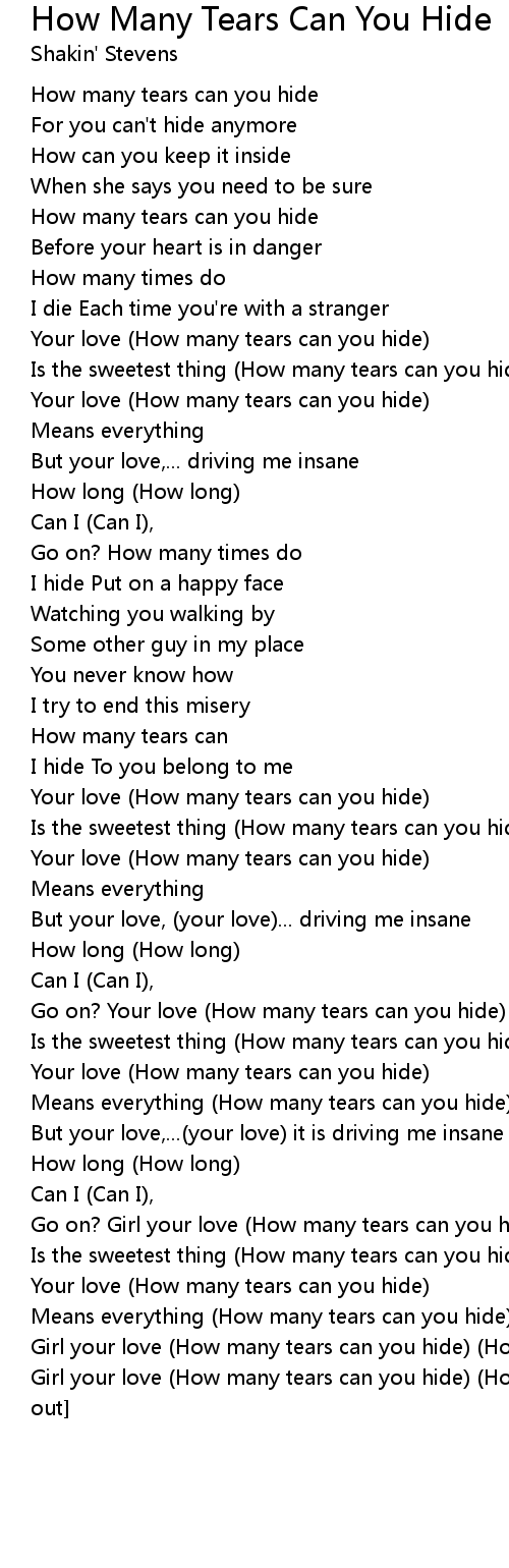 Girl your love (How many tears can you hide) (How many tears can you hide) [fade out] |