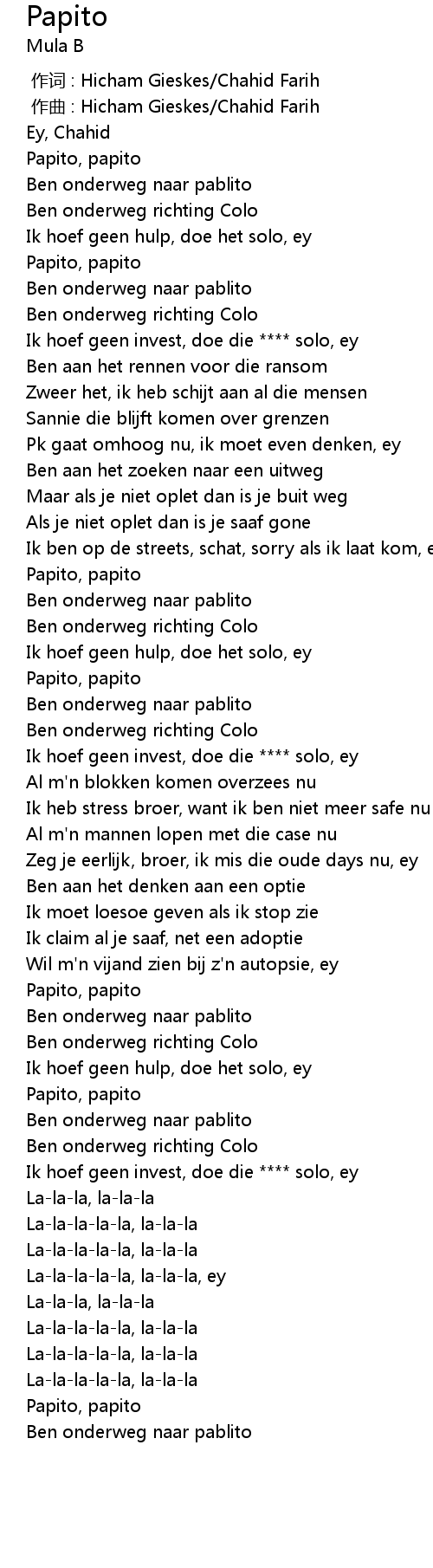 | [01:51.14] | Ik hoef geen invest, doe die **** solo, ey |