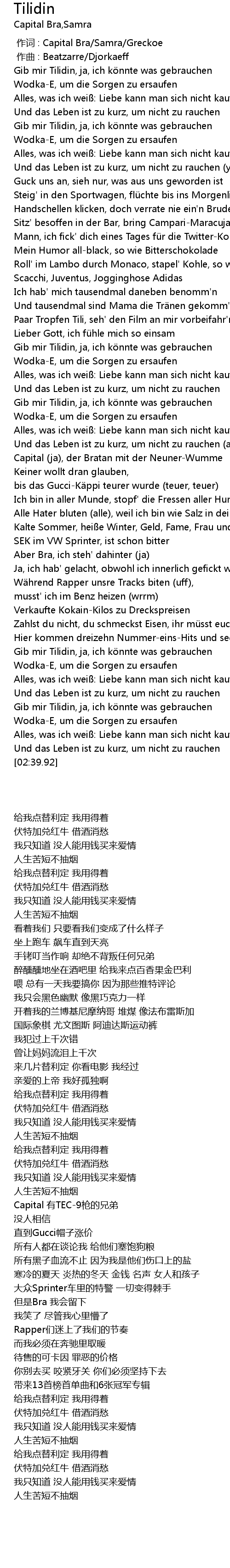 | [00:00.00] | 作词 : Capital Bra/Samra/Greckoe |