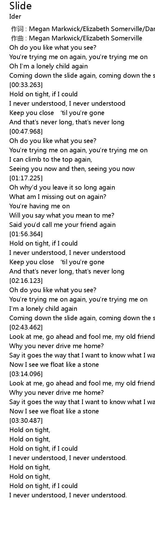| [00:24.111] | Coming down the slide again, coming down the slide |