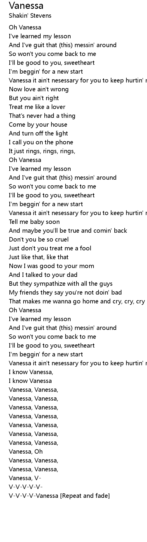 Vanessa it ain't nesessary for you to keep hurtin' me |