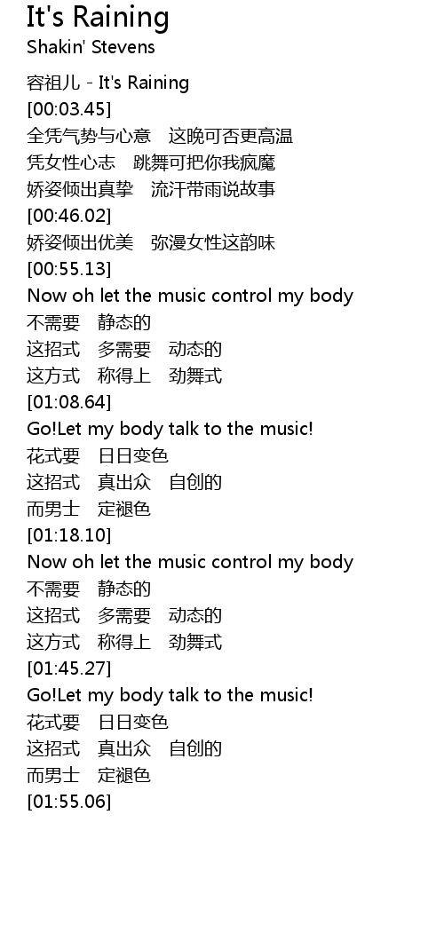 | [00:02.64] | róng zǔ ér It' s Raining |
