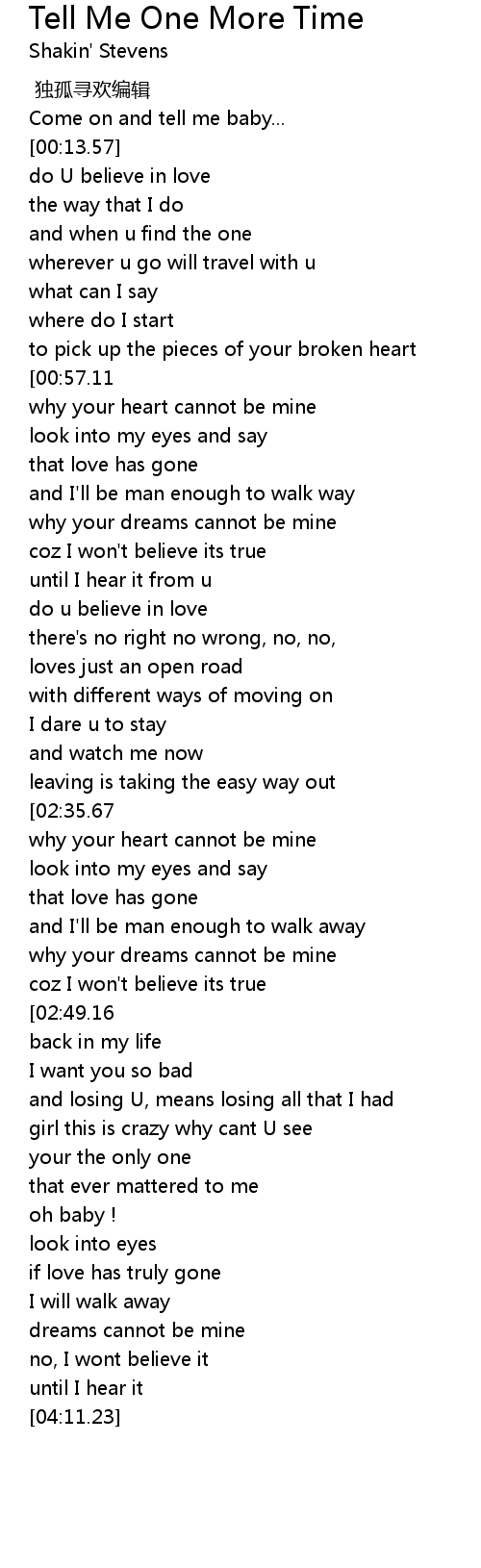 | [03:40.79][02:35.67][02:14.74] | tell me one more time |