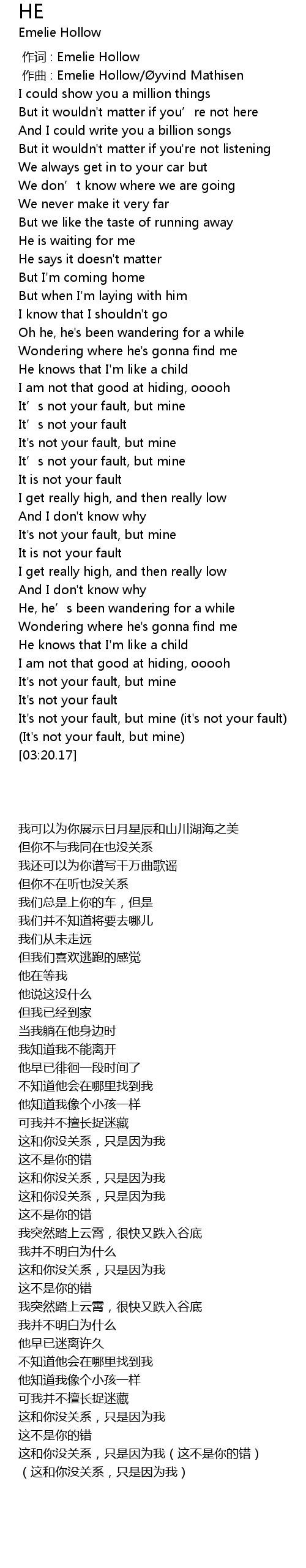 | [03:05.41] | It' s not your fault, but mine it' s not your fault |